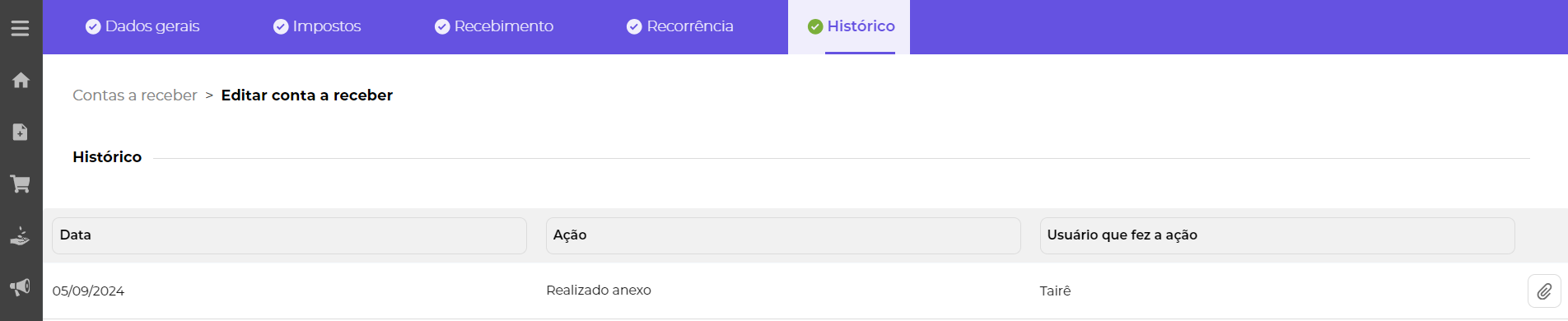 O botão anexar fica disponível somente para contas a receber que já estão registradas no sistema.