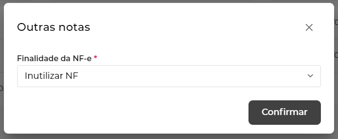 Ao clicar em Novo e selecionar a opção Inutilizar NF