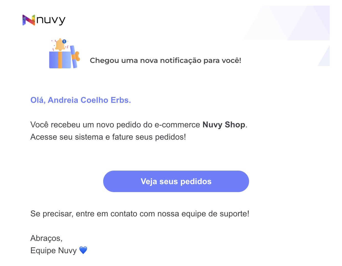 Assim que o cliente clica em "Concluir Pedido" na Nuvy Shop, o sistema trabalha por você: