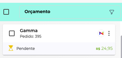 Pedido de venda: O pedido já aparece no módulo de Vendas > Orçamento/Pedido na coluna de Orçamento, pronto para você iniciar a separação e emitir a nota fiscal: